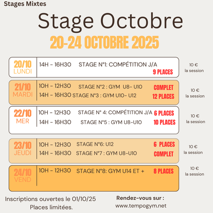 Le club Tempo propose des stages d'initiation ou perfectionnement sur certaines périodes de vacances scolaires.